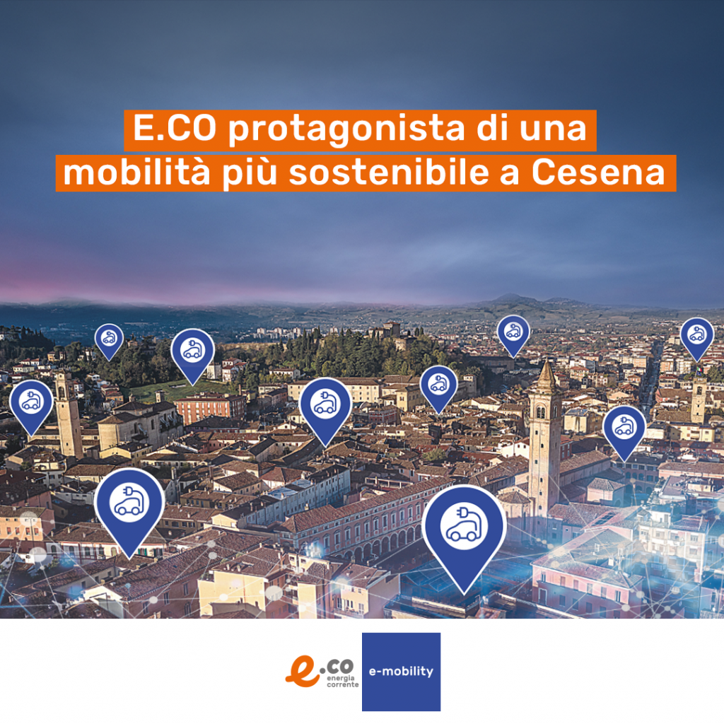 E.CO Energia Corrente partecipa alla transizione ecologica di Cesena, territorio in cui opera ogni giorno, con l’installazione di nr.10 colonnine di ricarica (charging point) dove auto elettriche o ibride si potranno facilmente rifornire di Energia Verde 100%.